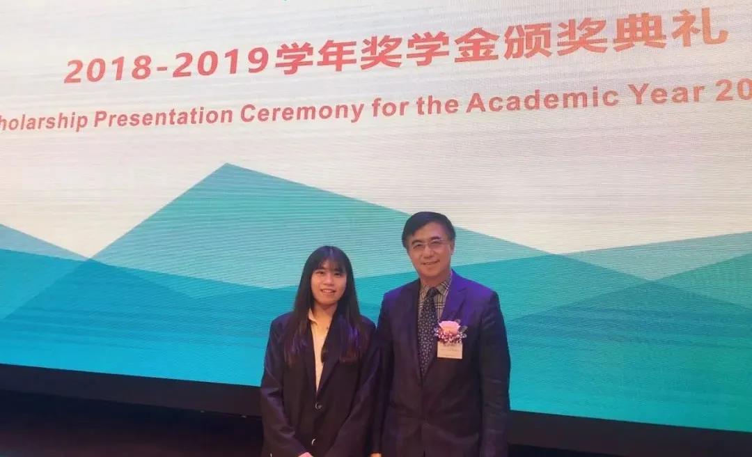 陈晓枫在奖学金颁奖典礼上与汤涛校长合影
