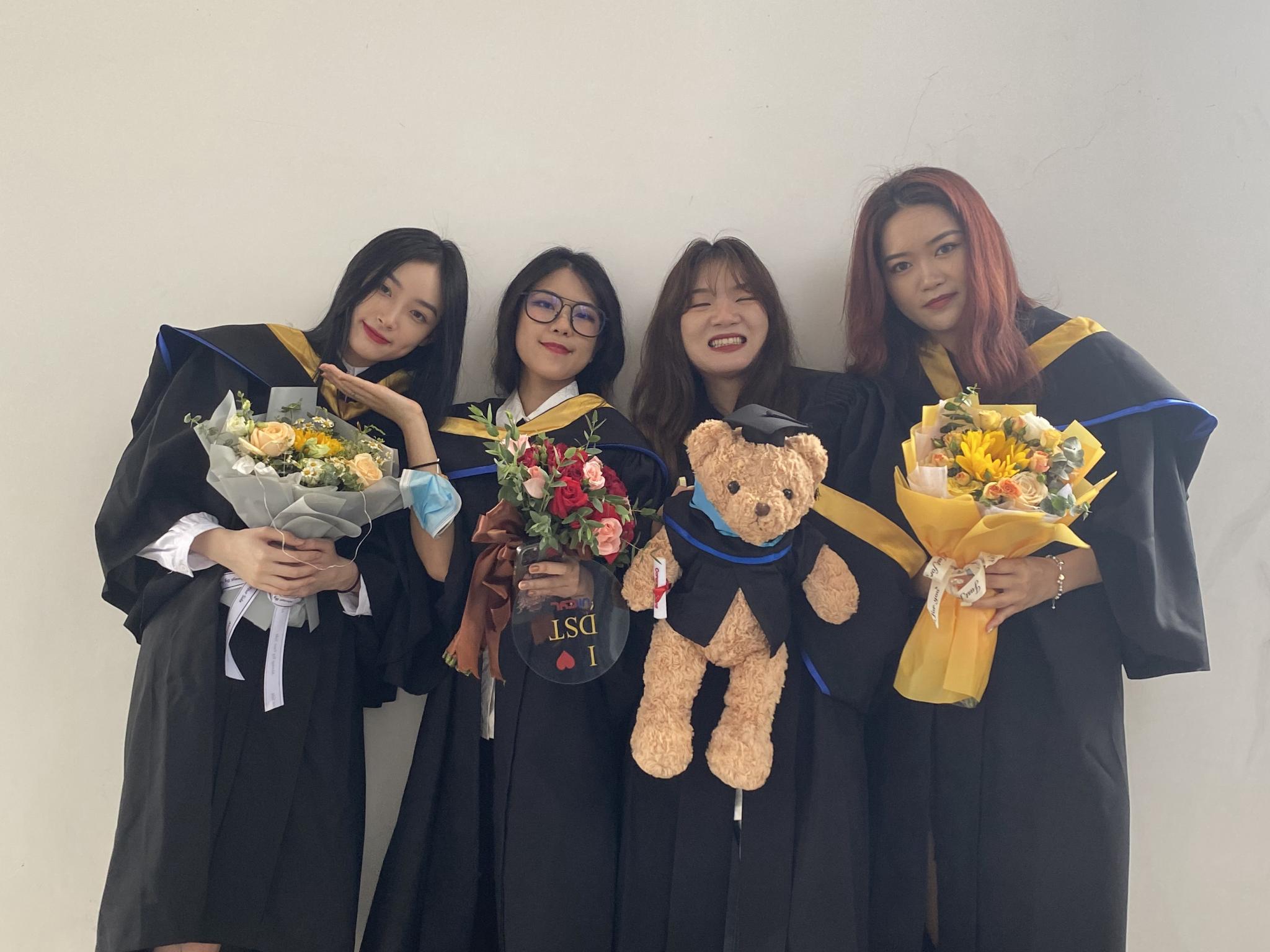 姚玥莹(左一)在UIC毕业时与同学留影