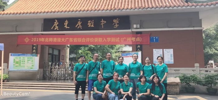 2019年,万兴莉女士(前排中)与热心家长们在UIC广东省综合评价录取入学测试广州考点担任义工