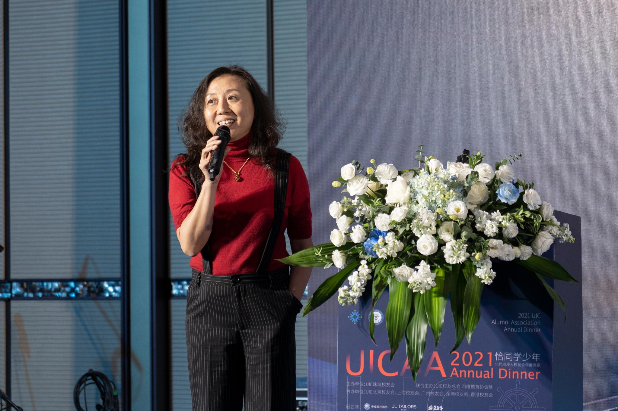 UIC珠海校友会会长杨帆女士在开幕致辞表示,校友会是校友情感的连接,期待UICer毕业后能为社会做出有益的贡献。