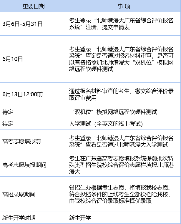 九、2023年北师港浸大广东省综合评价录取重要日程