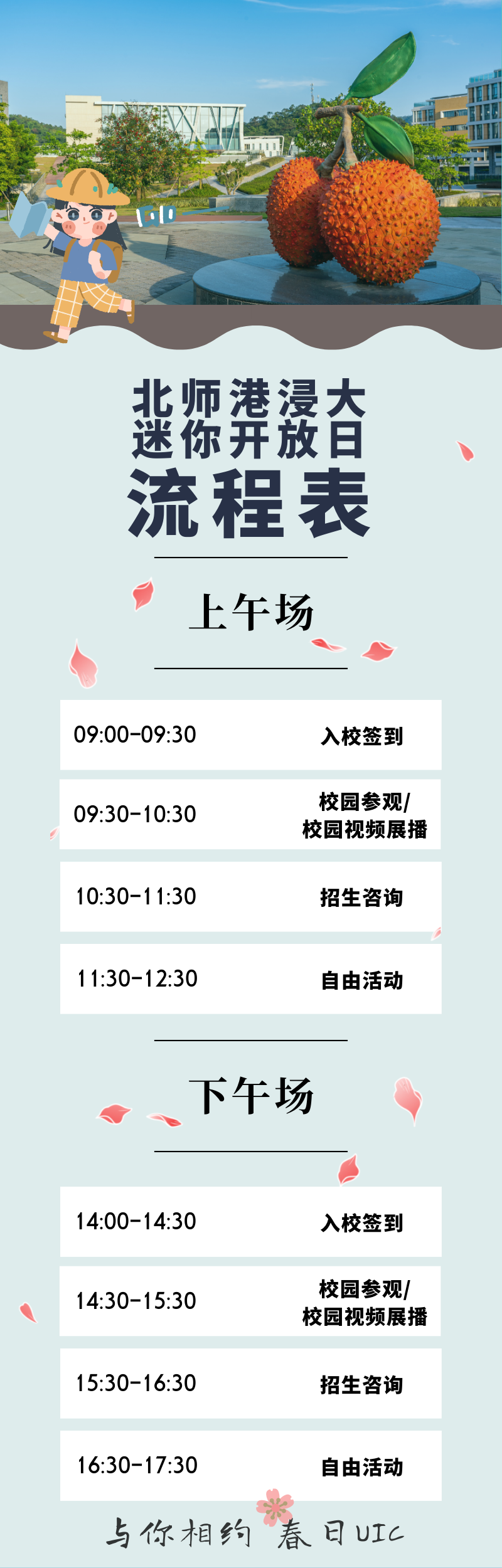 因此,为了方便更多家长与考生了解北师港浸大,我校将分别于2021年4月17日及5月2日举行迷你校园开放日,欢迎广大考生和家长有序预约参加。