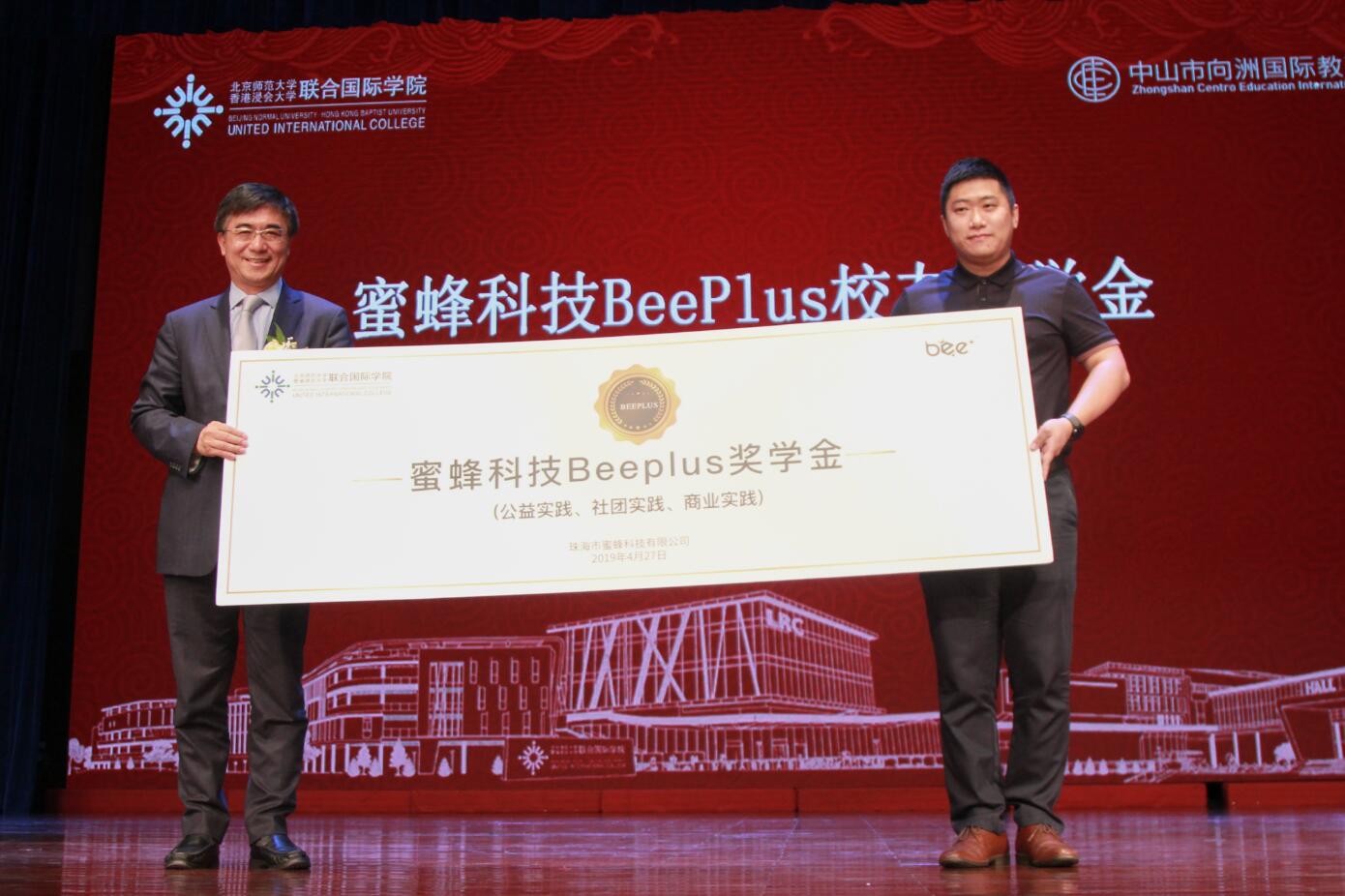 为了回馈母校,2019年,贾凡团队在北师港浸大创建了“蜜蜂科技Bee+奖学金”,每年分别奖励三名在公益活动、社团活动、商业实践中表现优秀的在校生,奖金为5万元。“我希望通过这笔奖学金,能让更多的同学去关注到社团和商业实践的价值,也对那些愿意花时间在这其中学习和成长的学生们得到表彰和鼓励。”贾凡说。