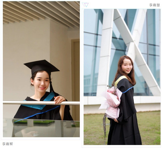 在UIC的四年,姐妹俩一起成为朋辈导师、一起拿奖学金、一起成长与蜕变。在姐姐眼里,妹妹李嘉慧变得更胆大心细,社交能力强;在妹妹眼里,姐姐李嘉智则更自律,目标清晰。