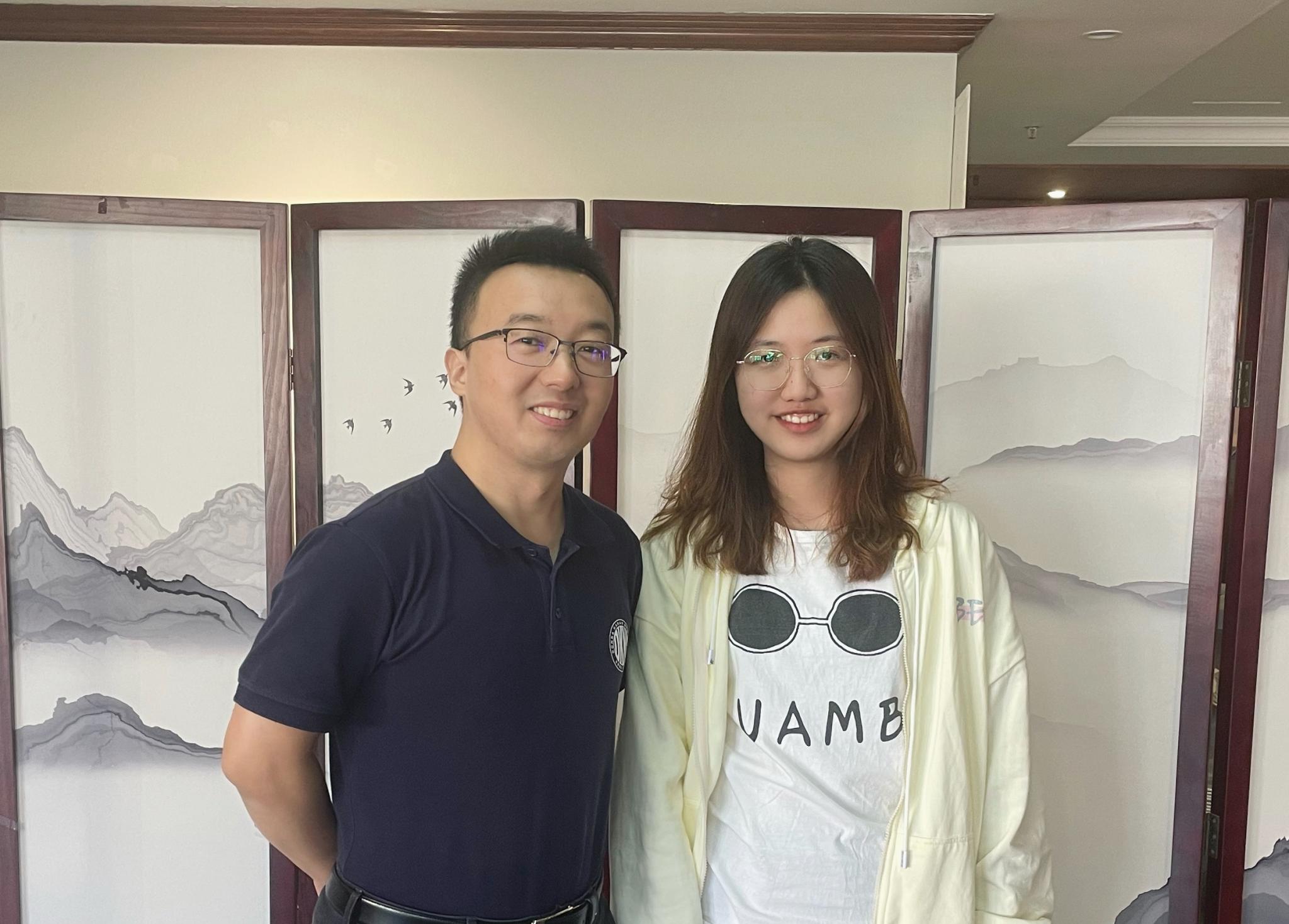 卢泓逸与FYP导师、理工科技学院助理院长(学生与外务)、副教授邓宇辉(左)合影