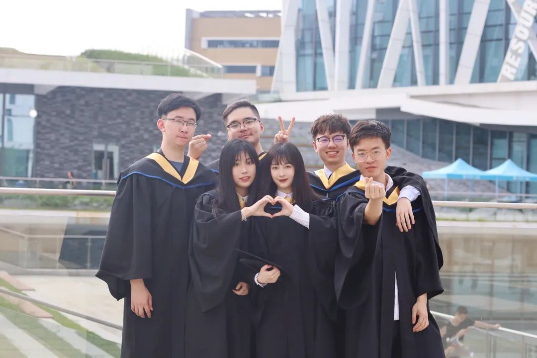 在UIC毕业时,仇毅夫(右二)与同学合影
