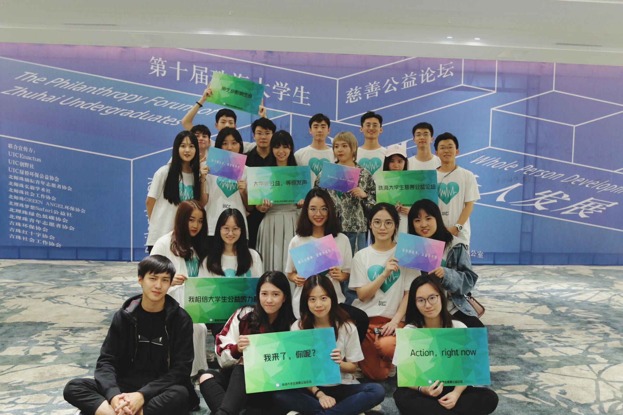 邓蕴僖(前排右一)与同学在珠海大学生慈善公益论坛