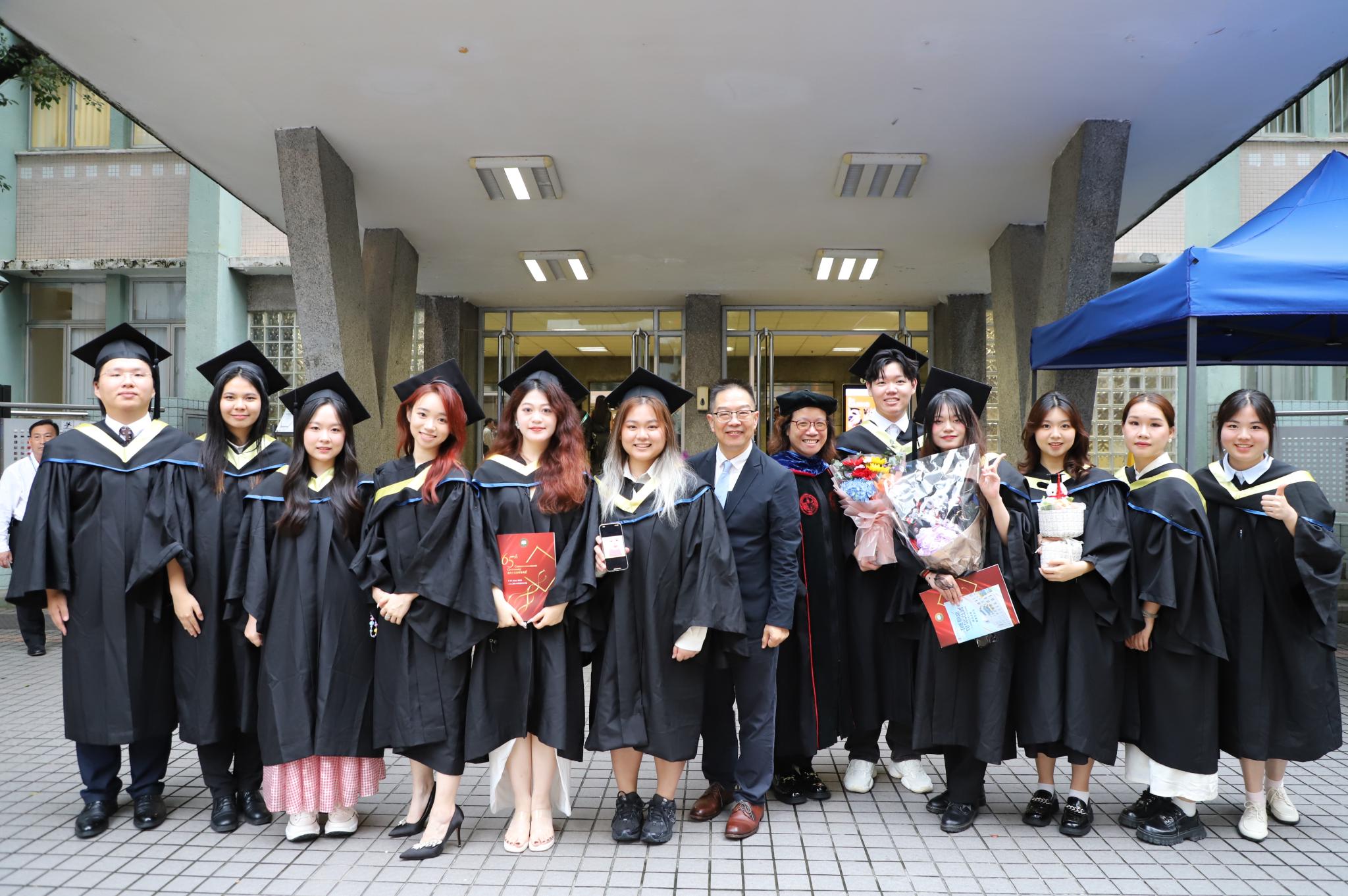 杨佳宁(左一)赴香港浸会大学参加毕业典礼